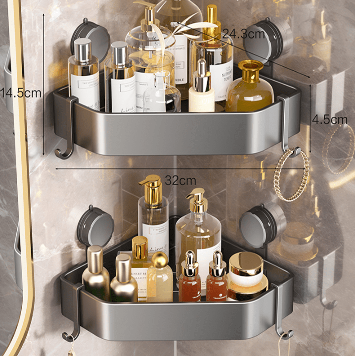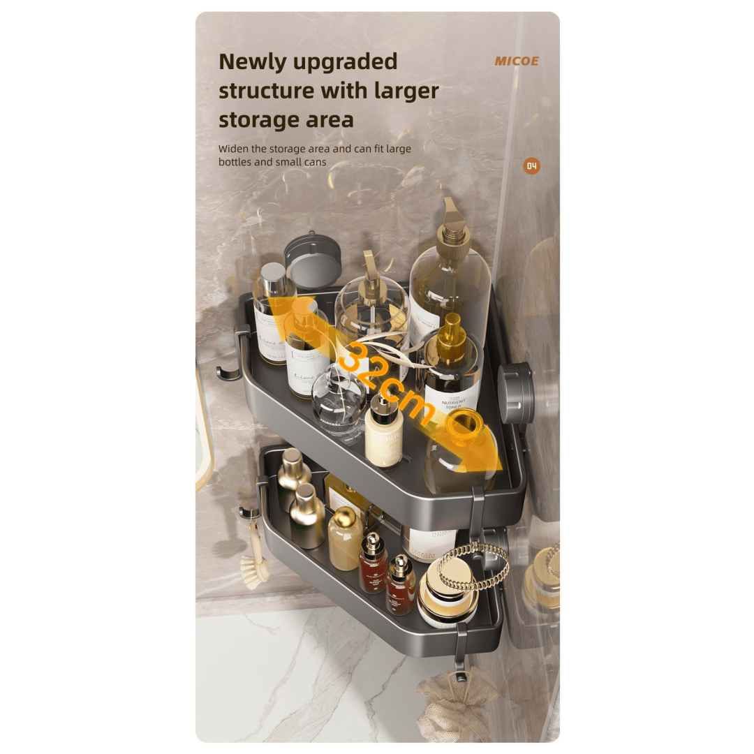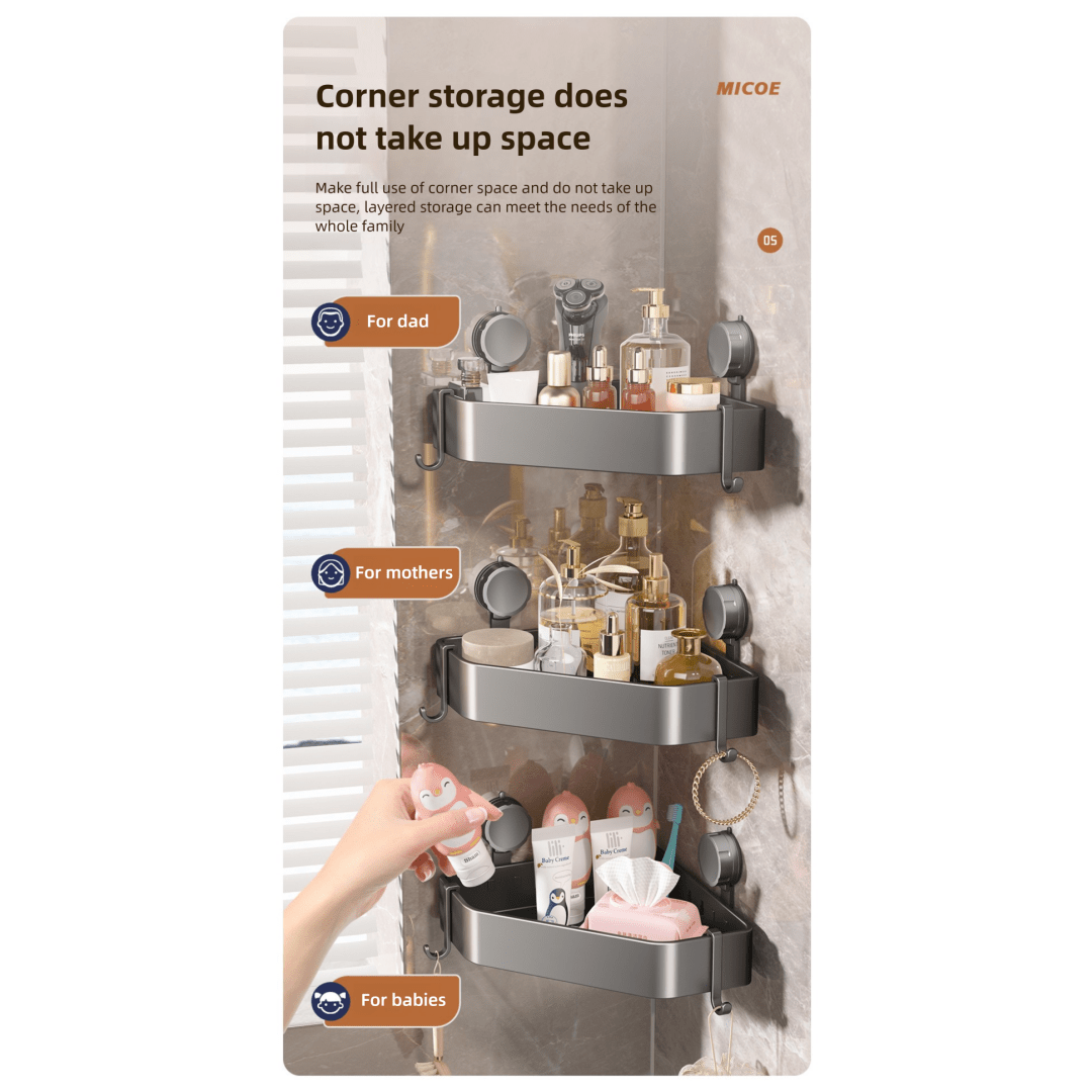 Maximize your bathroom space with a sleek, no-drill corner solution. This corner shower shelf is designed to keep your bathroom organized without damaging your walls.
