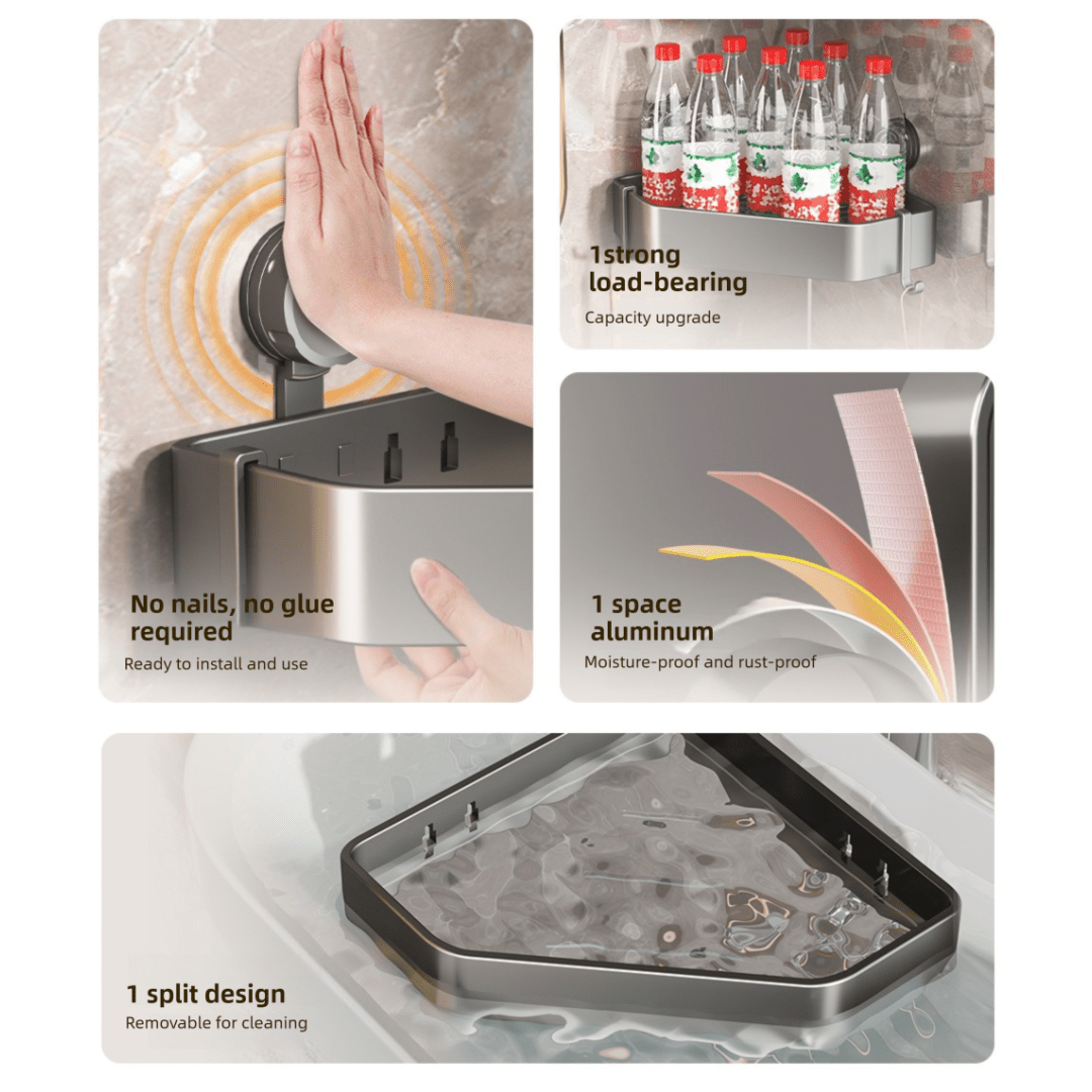 Heavy-Duty Hold – Supports shampoos, soaps, and bathroom essentials